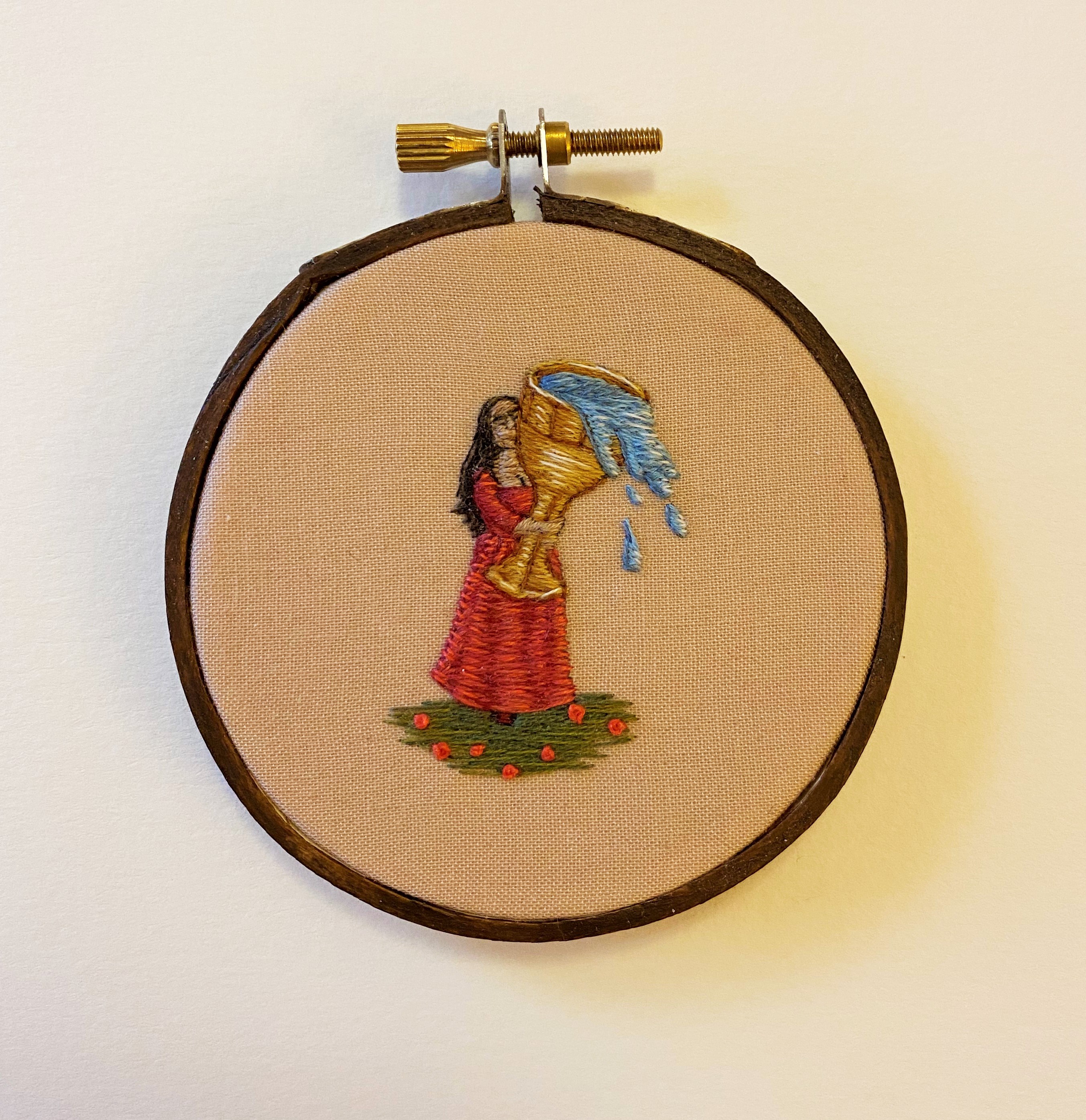 Hand embroidery mounted in a 3" wooden hoop and ready to hang.