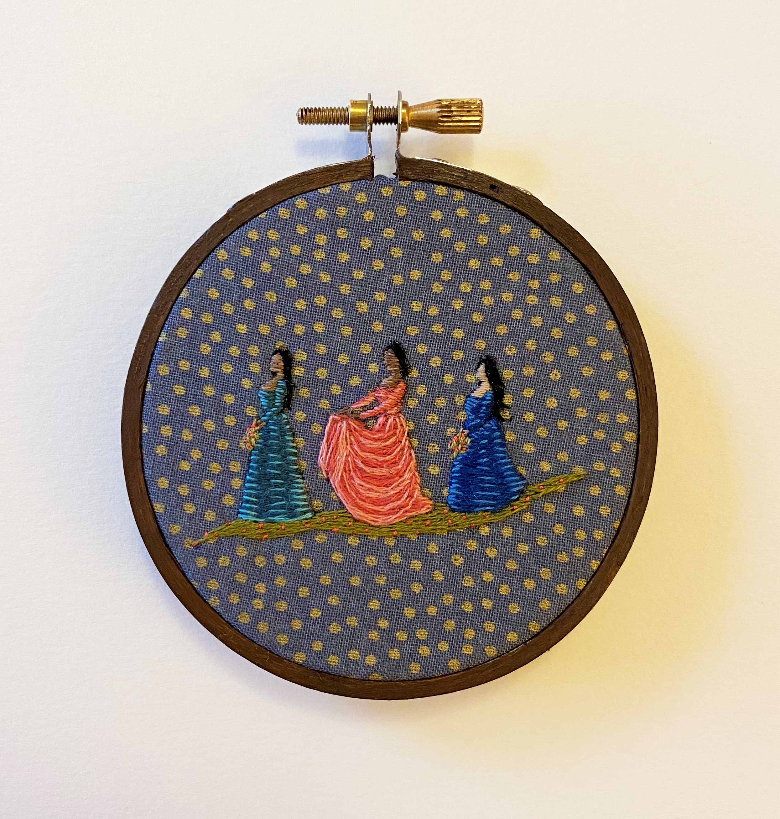 Hand embroidery mounted in a 3" hoop and ready to hang.