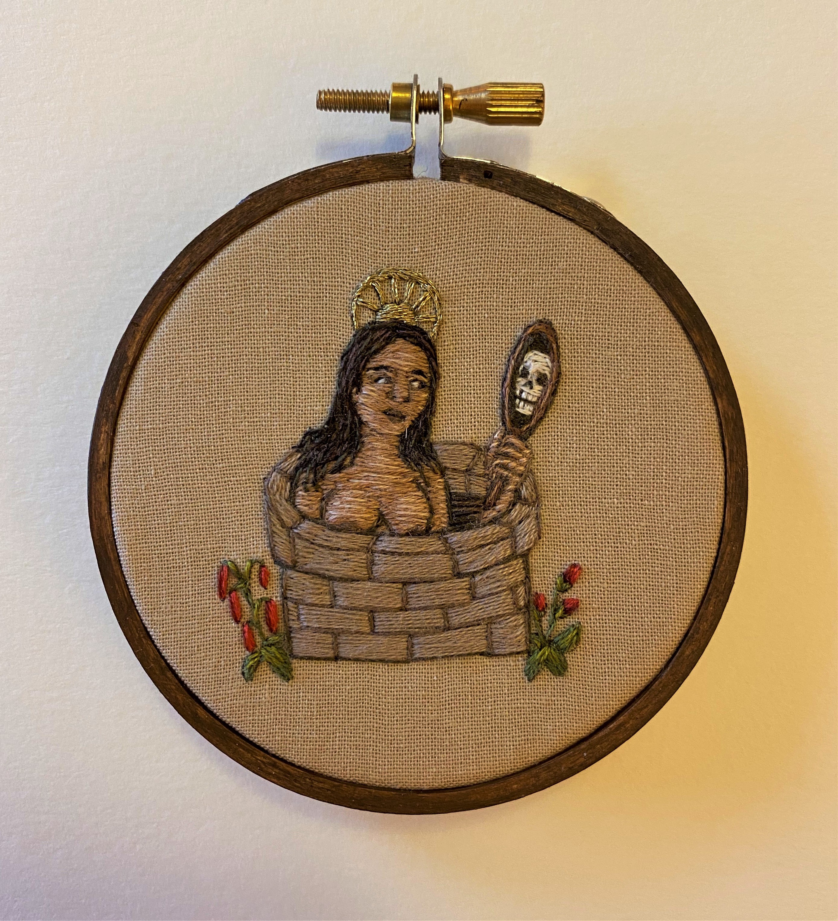 Hand embroidery mounted in a 3" wooden hoop and ready to hang.