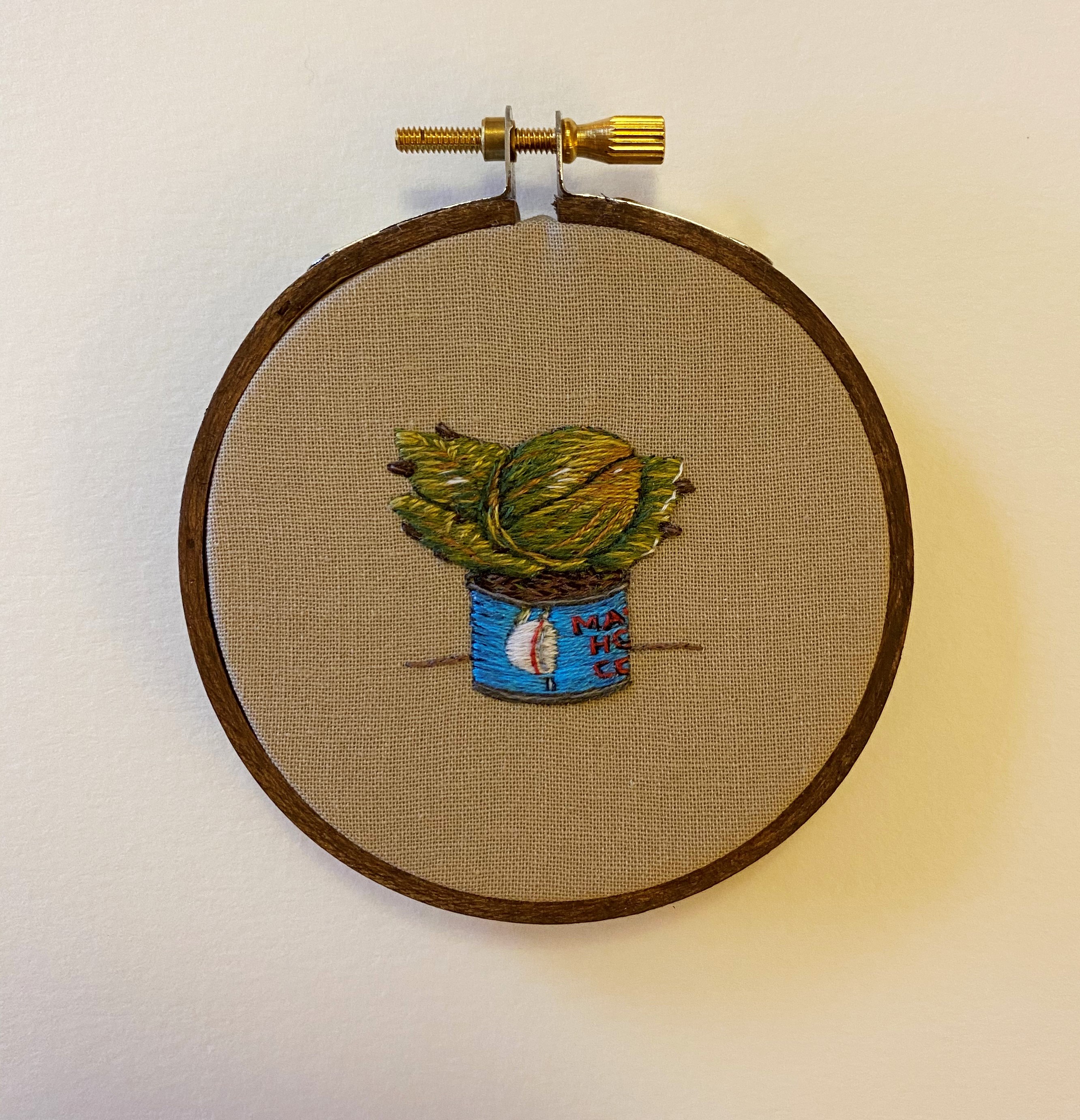 Hand embroidery mounted in a 3" wooden hoop and ready to hang.