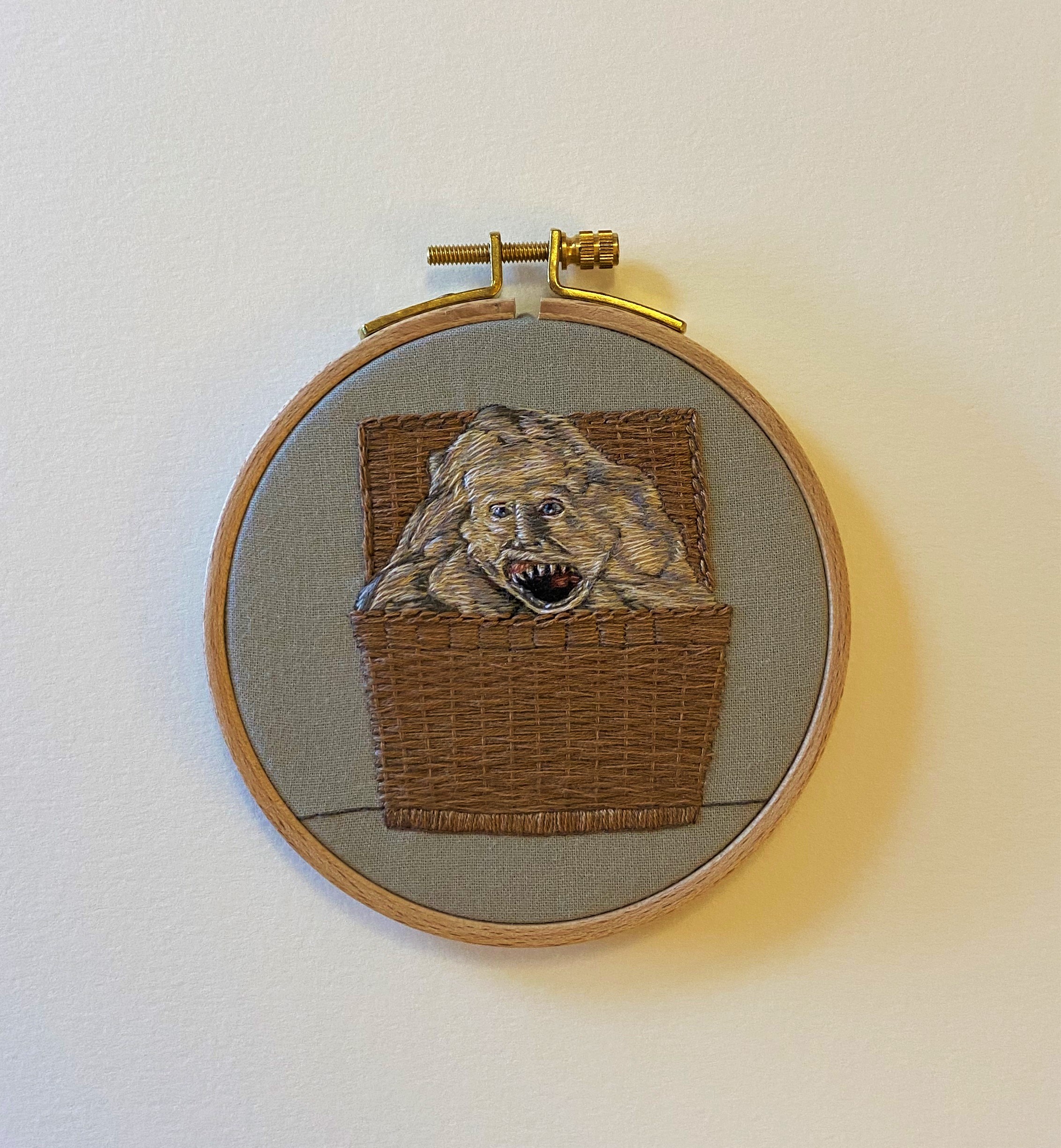 Hand embroidery mounted in a 3" hoop and ready to hang.