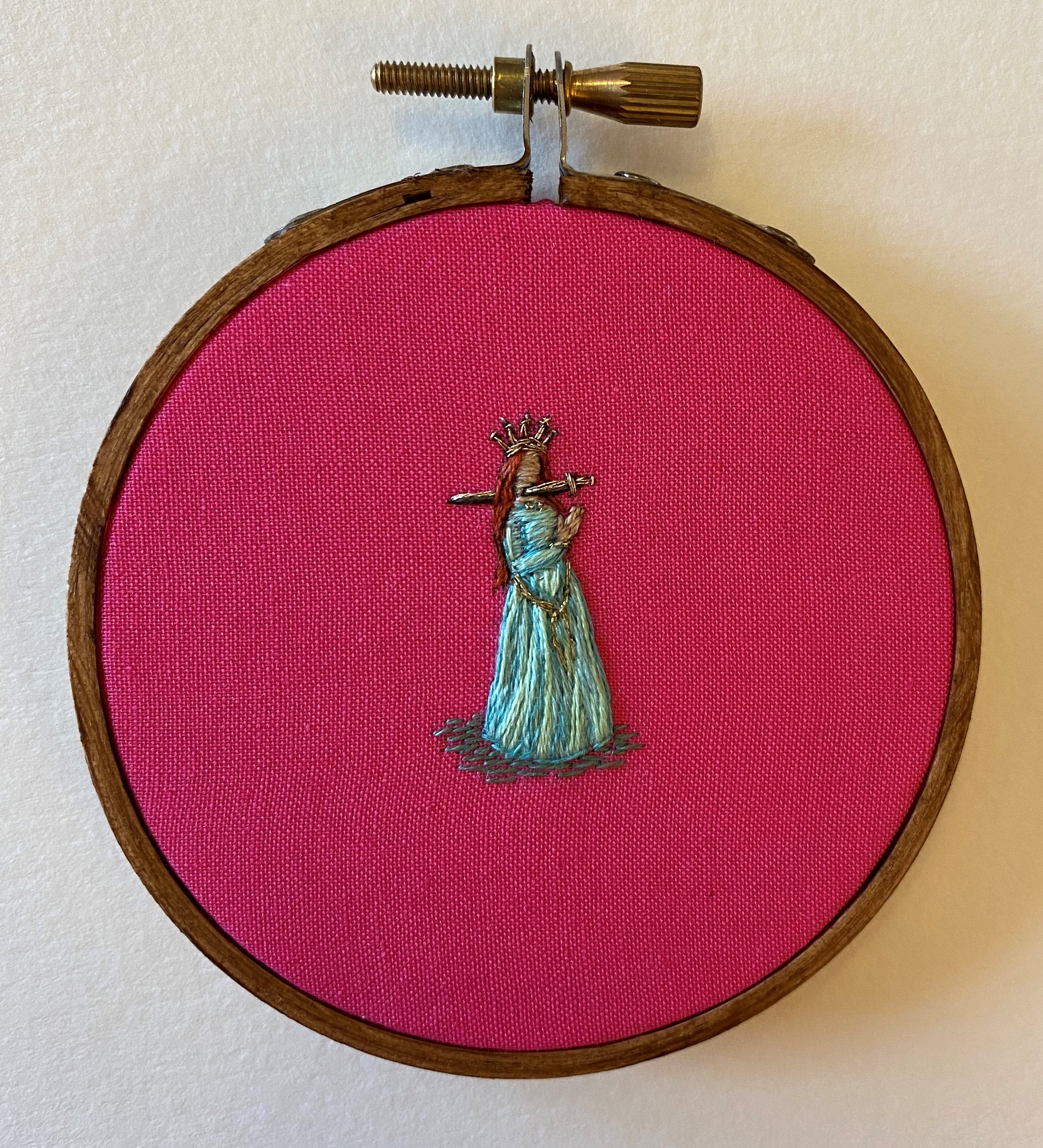 Hand embroidery mounted in a 3" hoop and ready to hang.