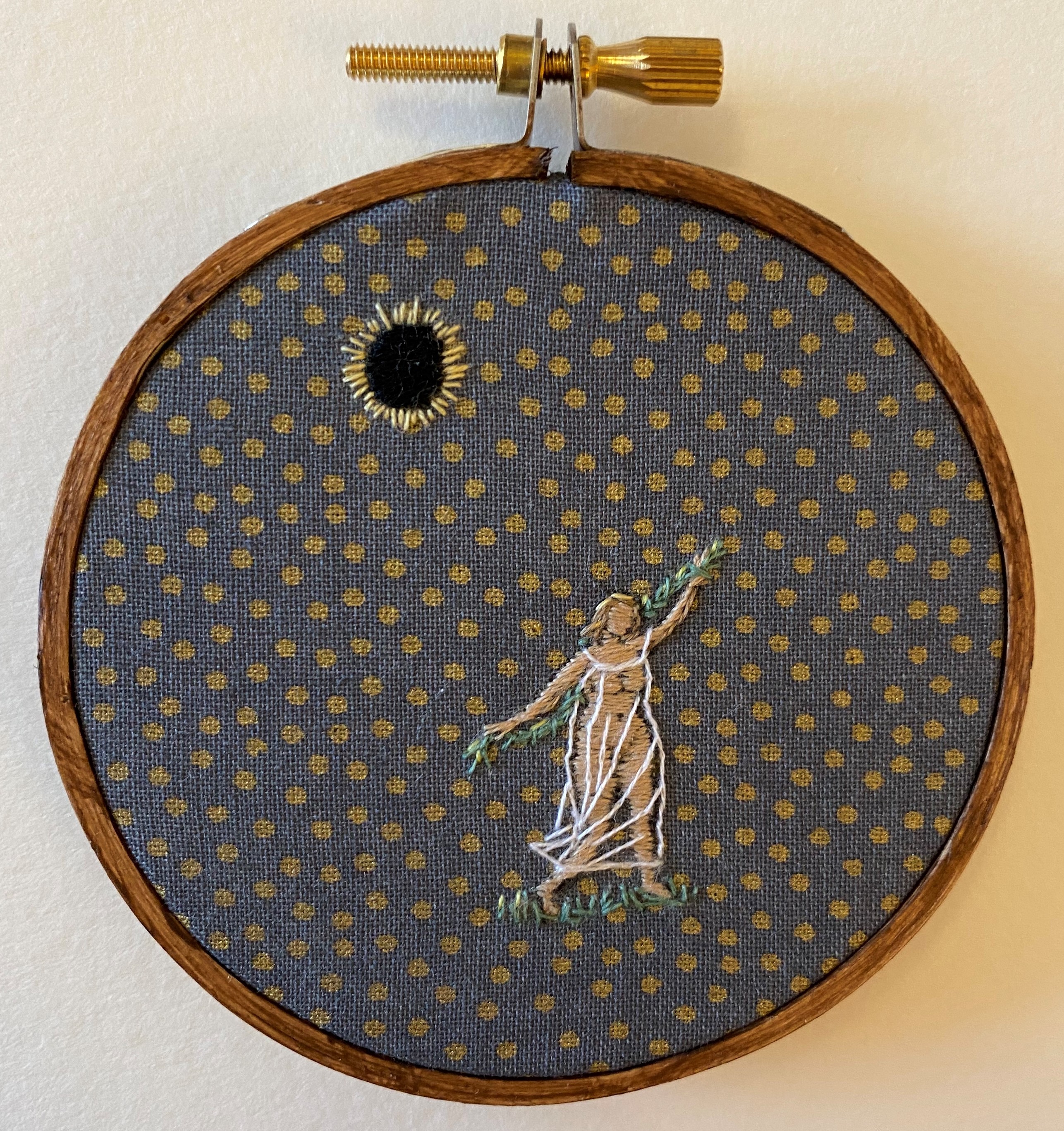 Hand embroidery mounted in a 3" hoop and ready to hang.
