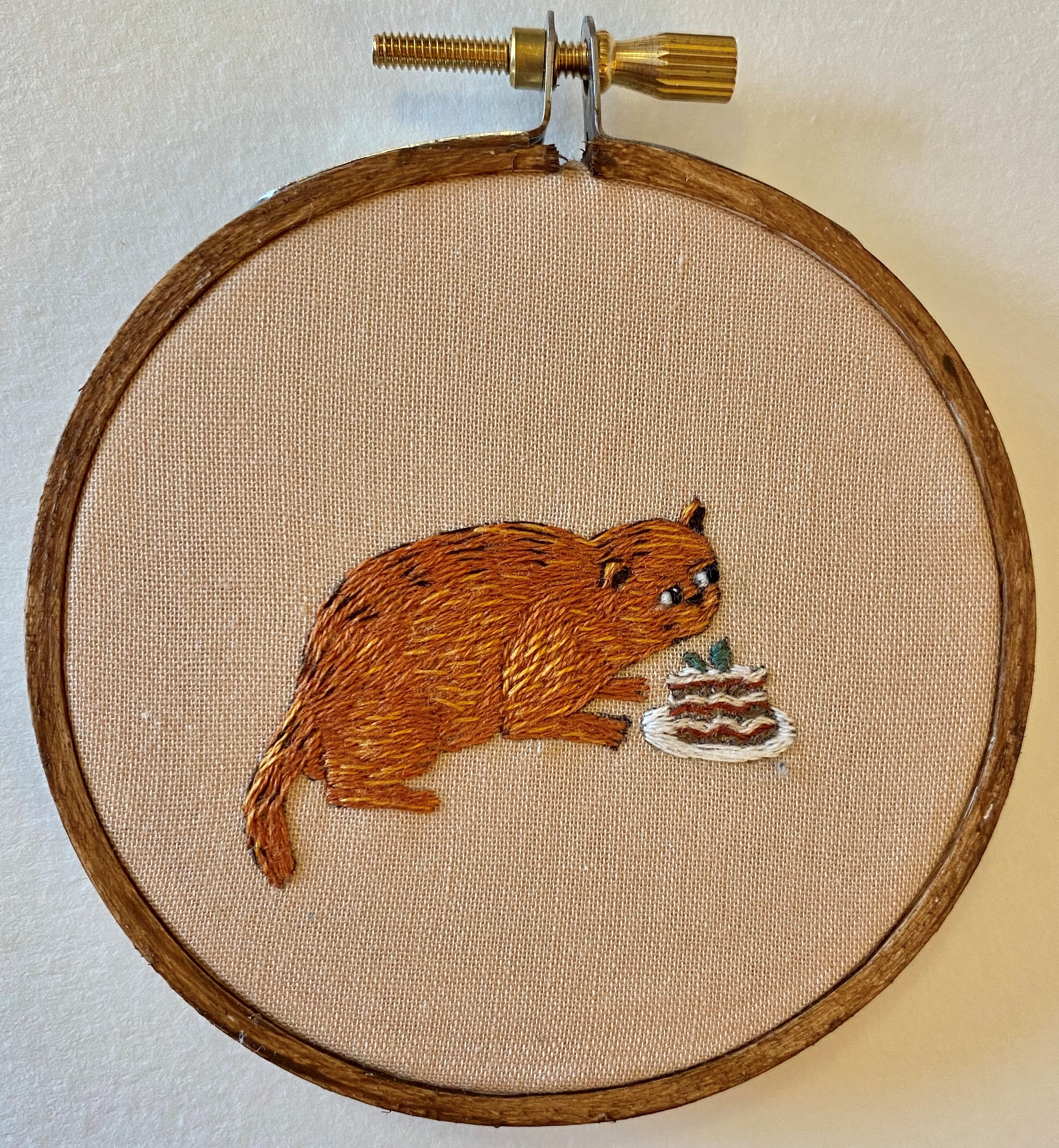 Hand embroidery mounted in a 3" hoop and ready to hang.