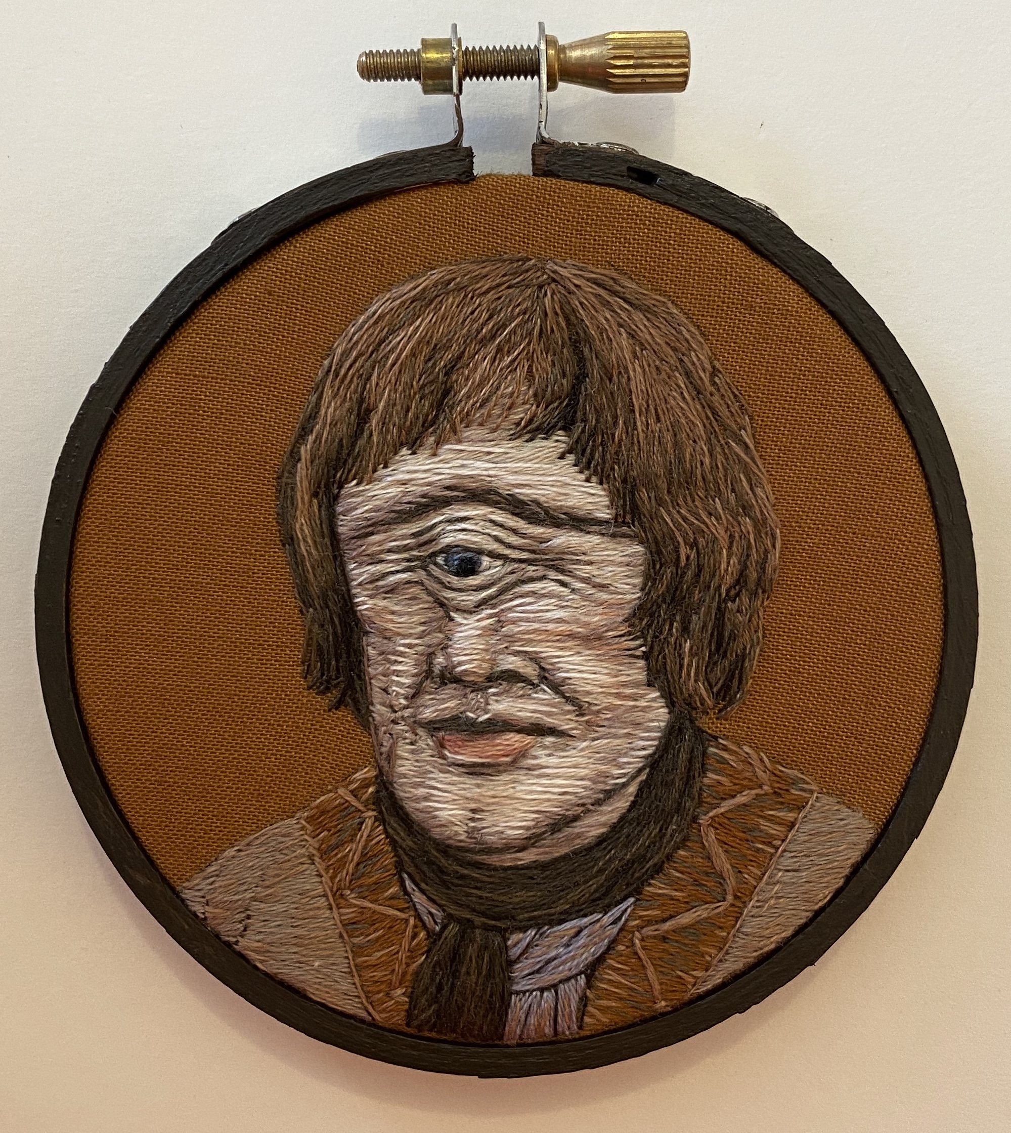 Hand embroidery mounted in a 3" hoop and ready to hang.