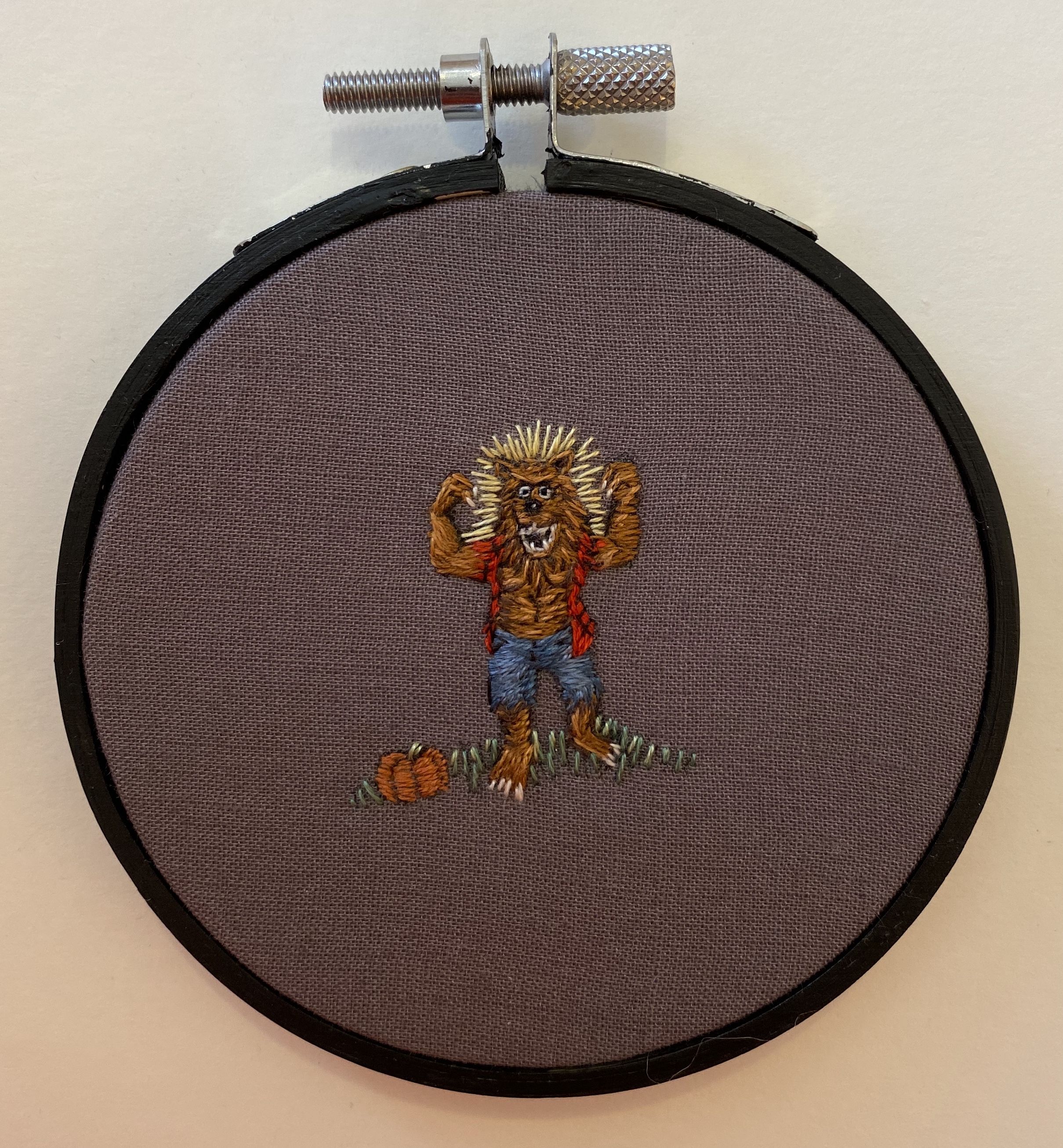 Hand embroidery mounted in a 3" hoop and ready to hang.
