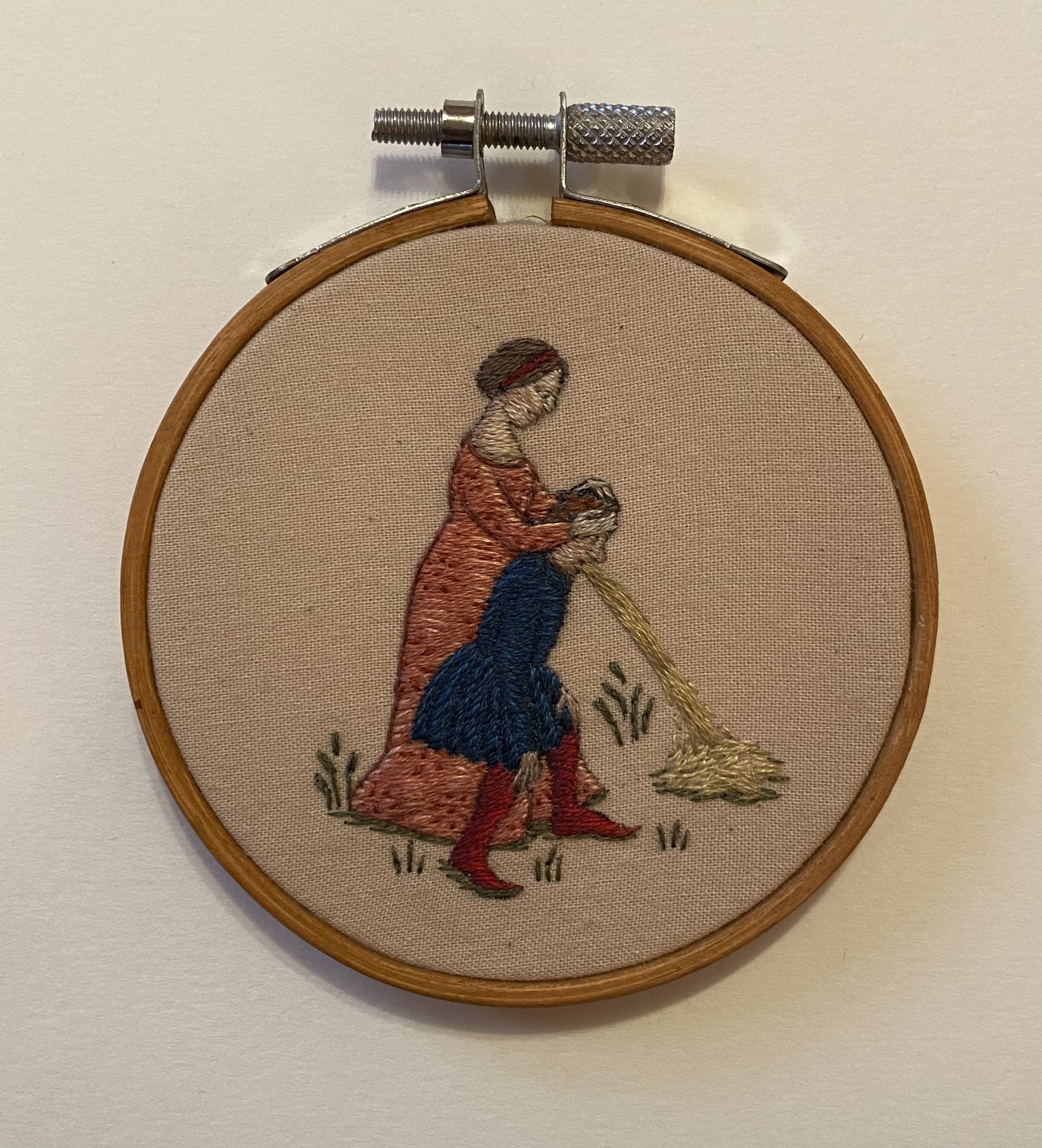 Hand embroidery mounted in a 3" wooden hoop and ready to hang.