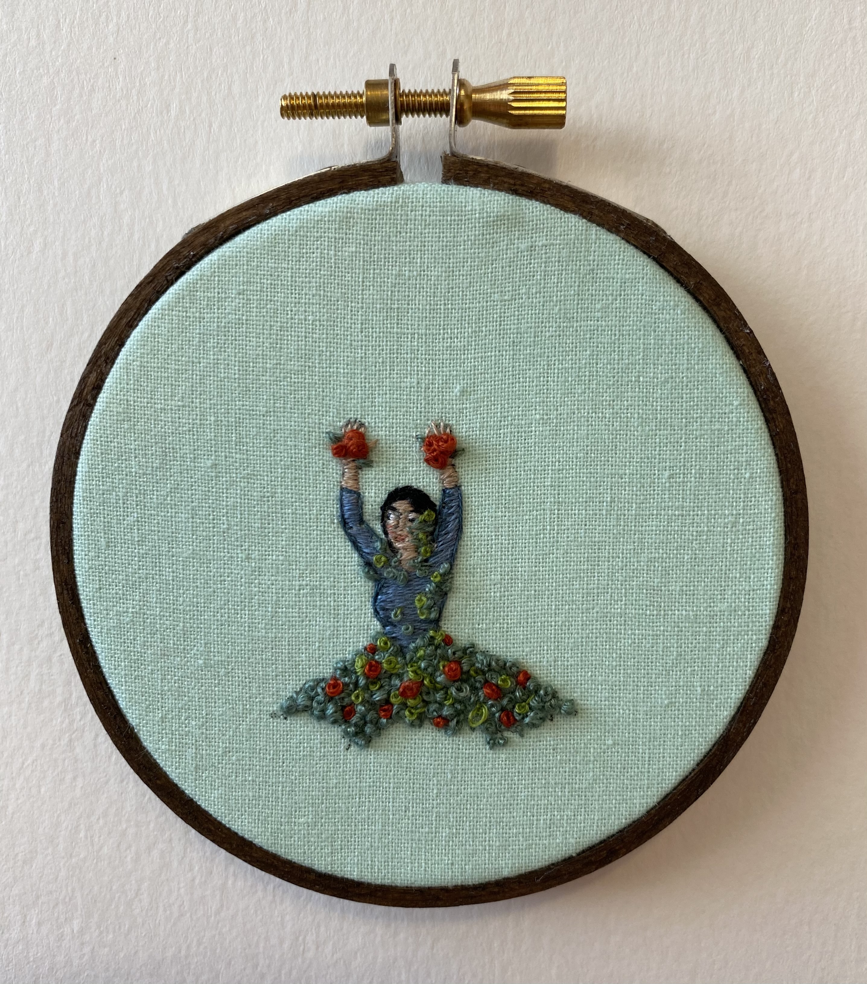 Hand embroidery mounted in a 3" hoop and ready to hang.