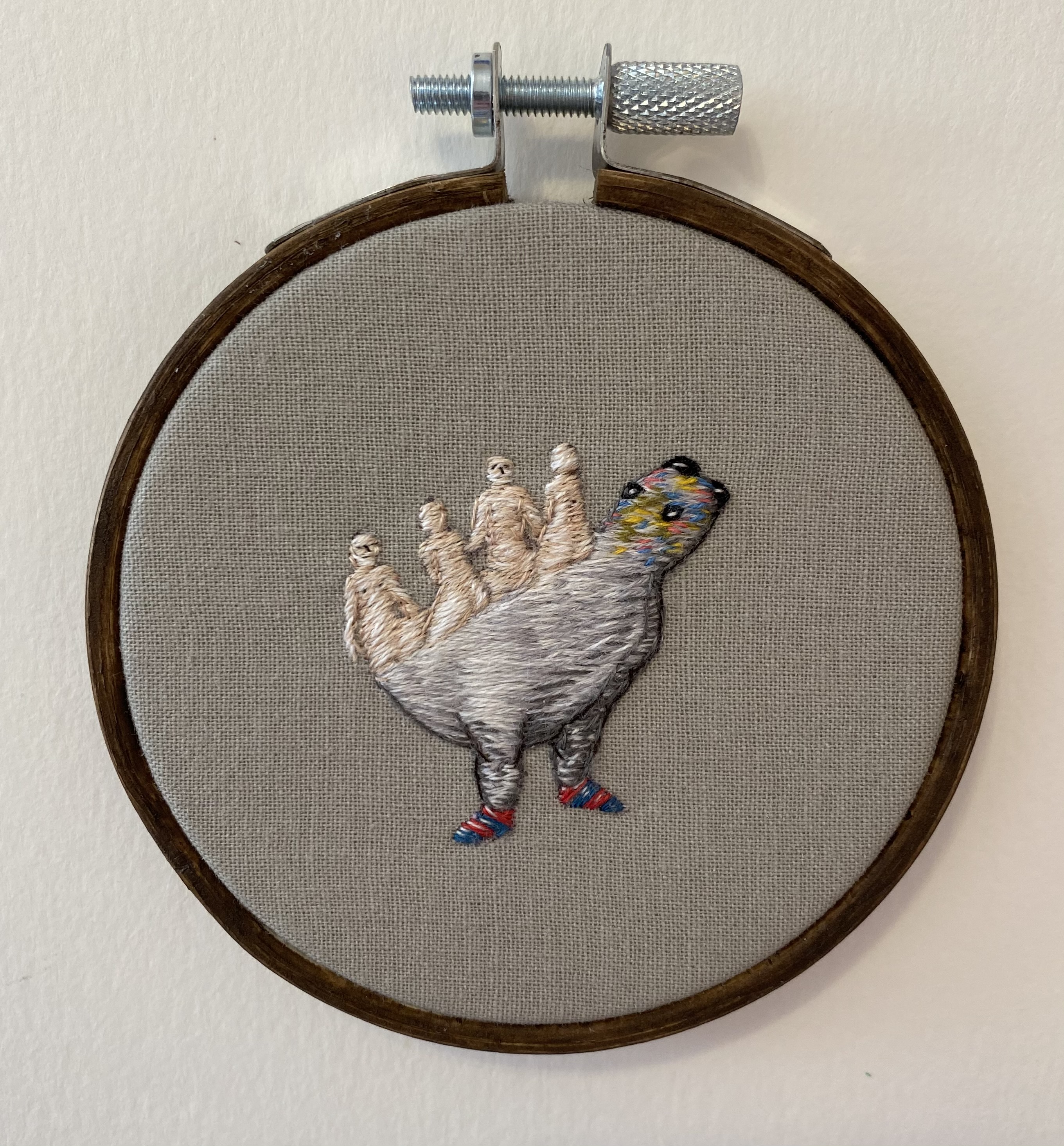 Hand embroidery mounted in a 3" hoop and ready to hang.