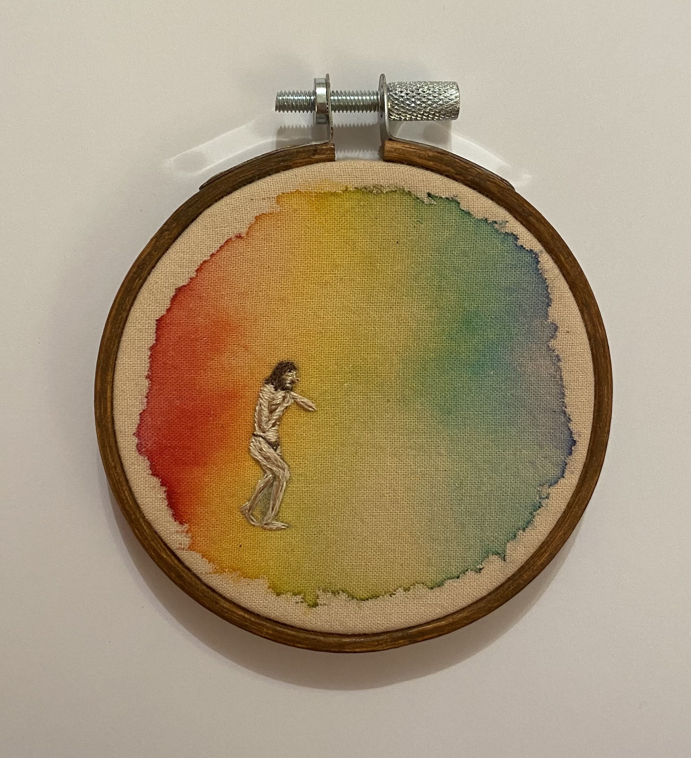 Hand embroidery mounted in a 3" hoop and ready to hang.