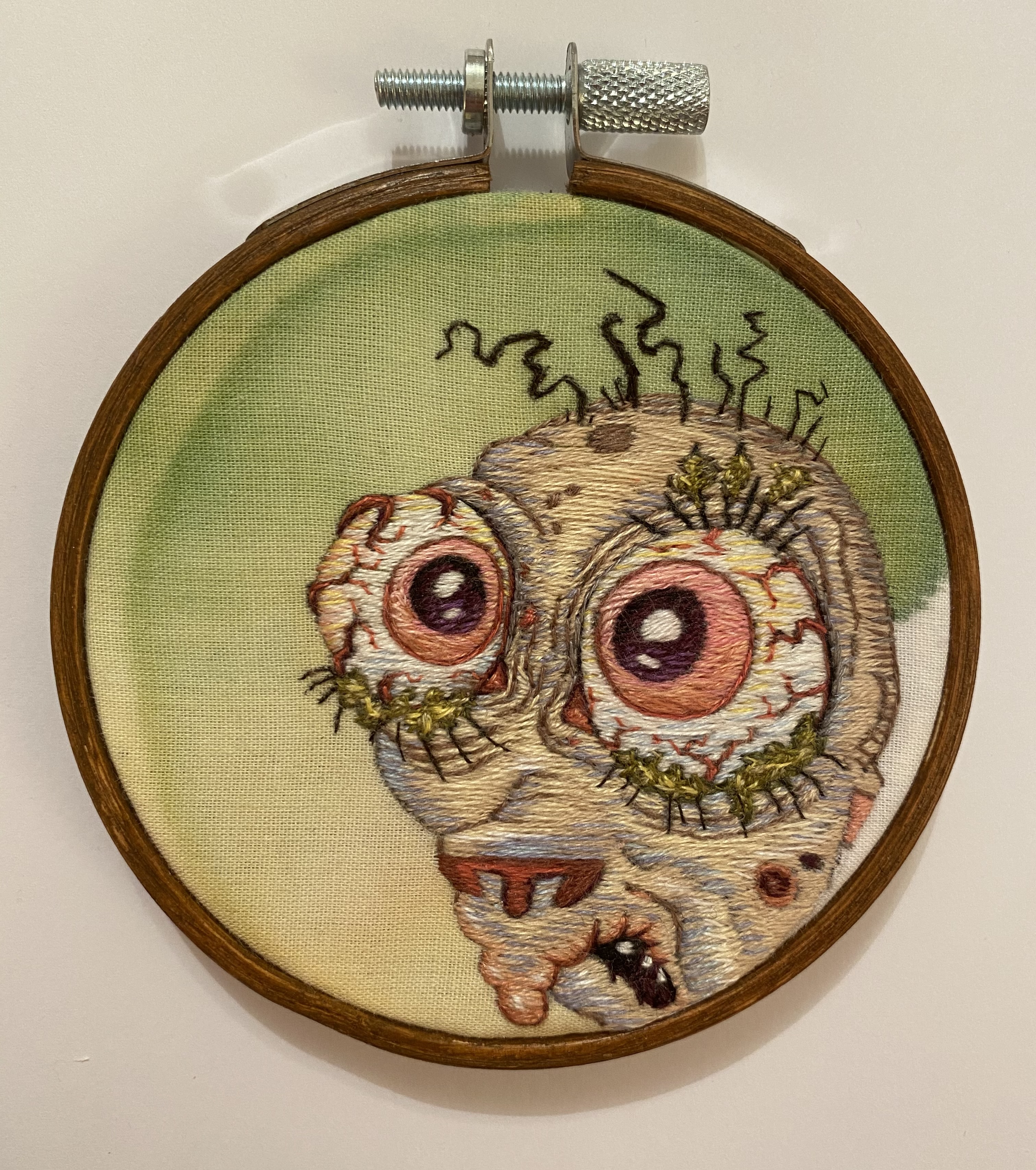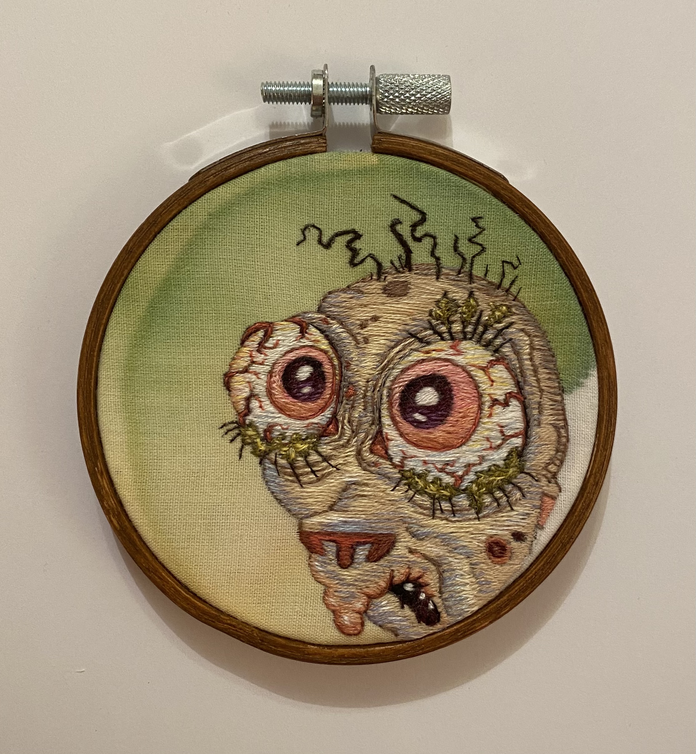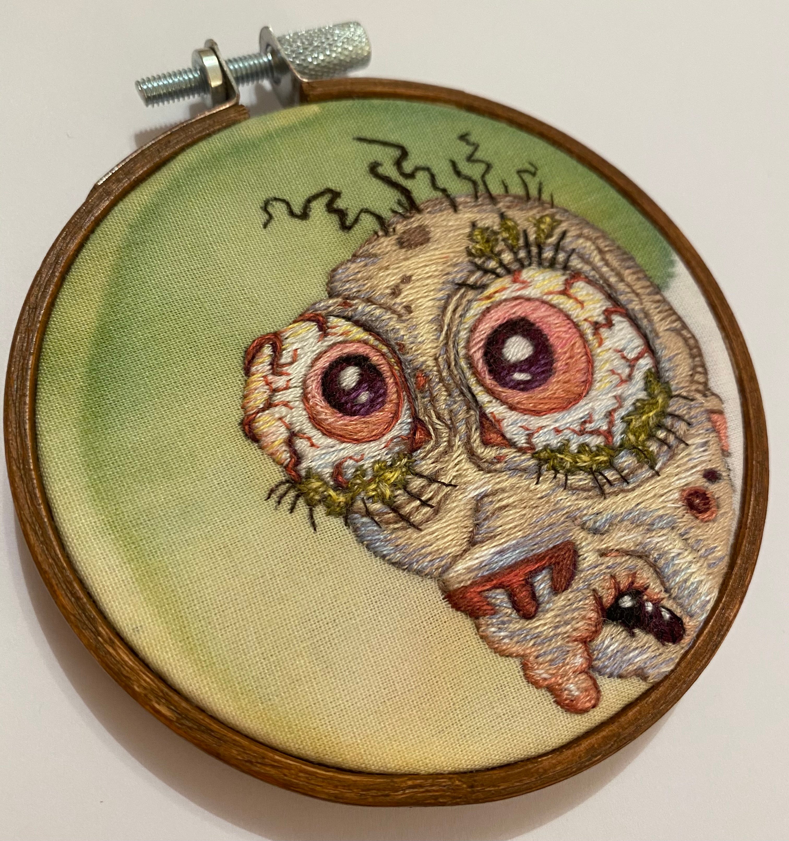 Hand embroidery mounted in a 3" hoop and ready to hang.
