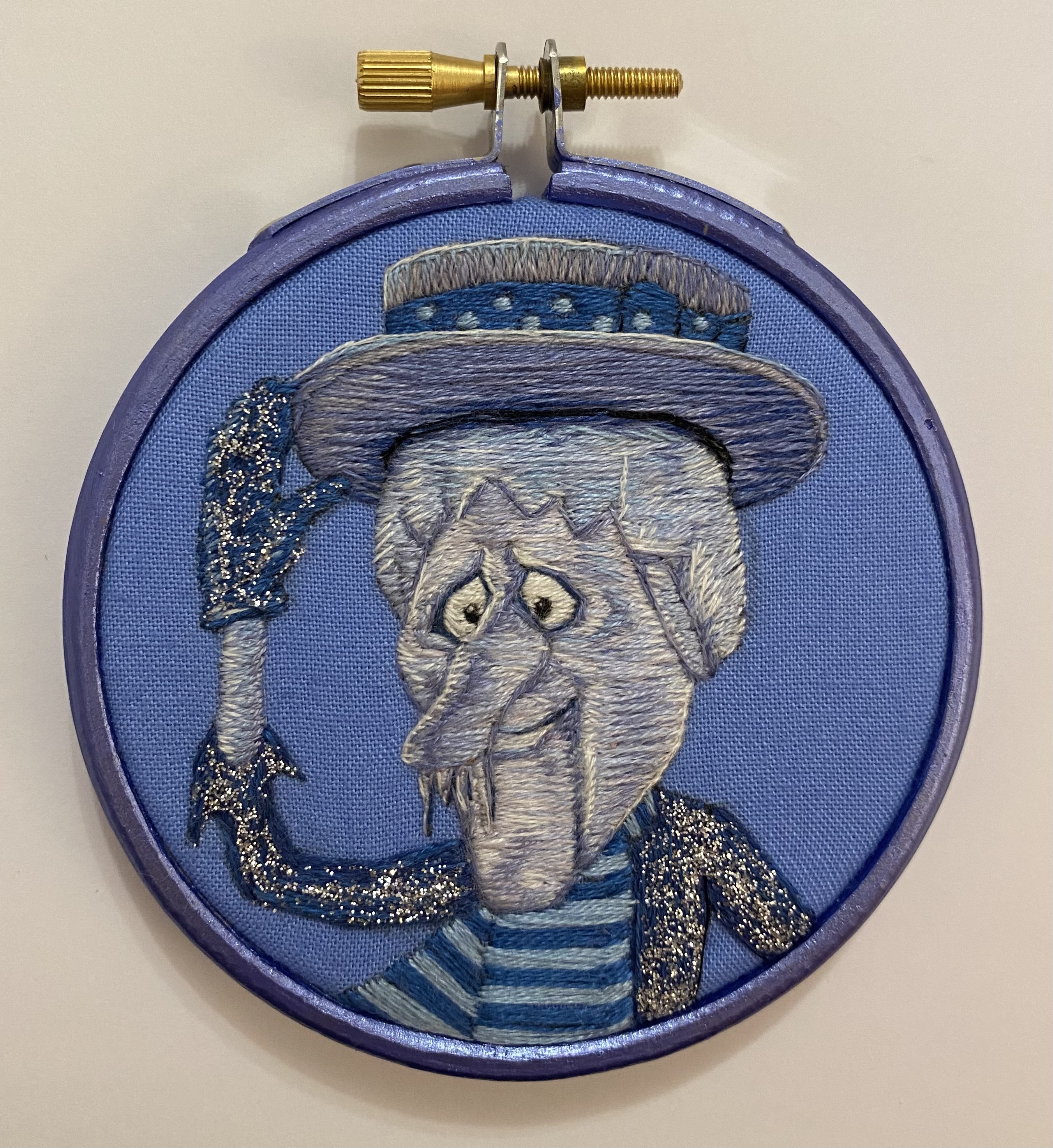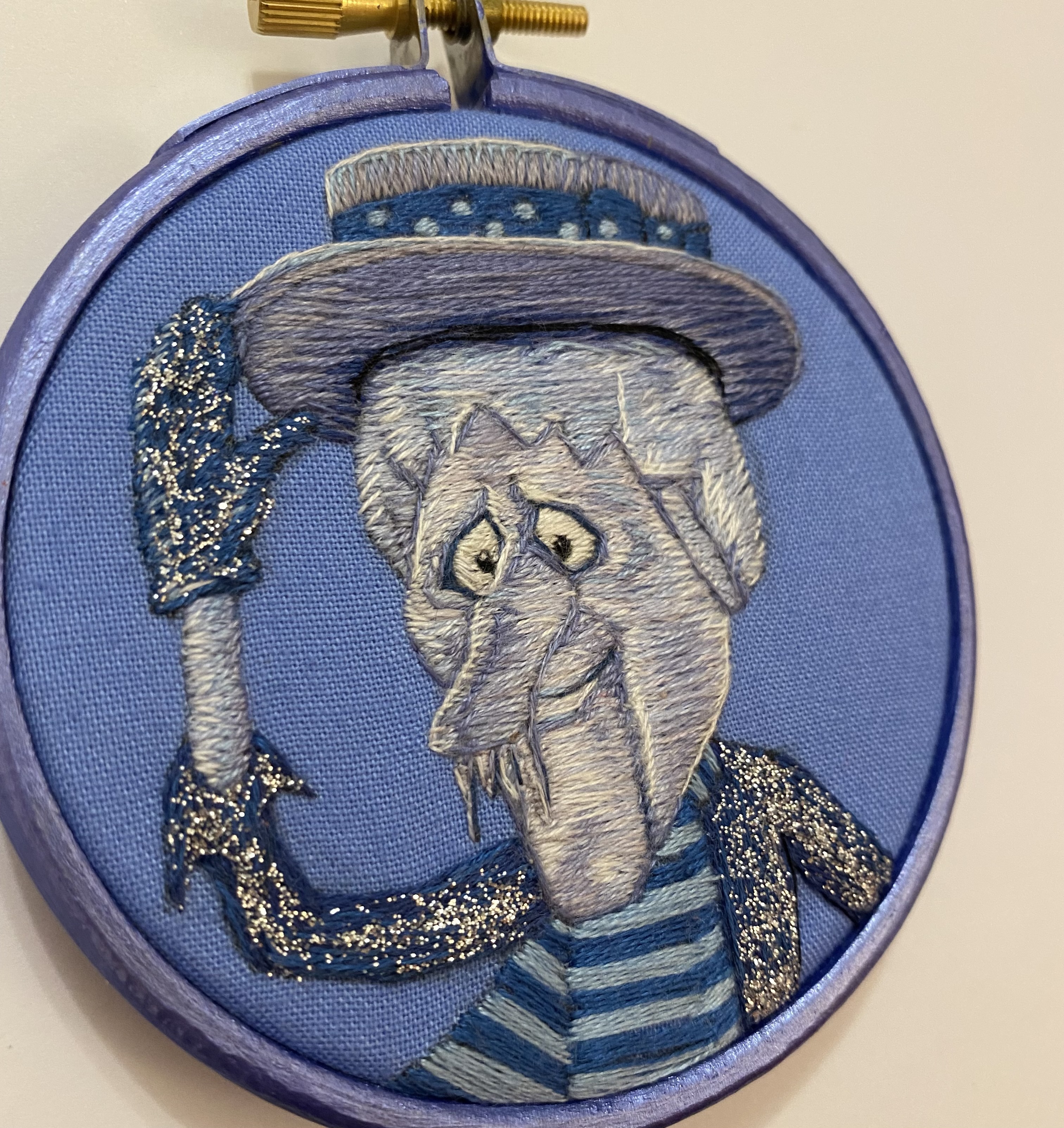 Hand emboidery mounted in a 3" stained wooden hoop and ready to hang.