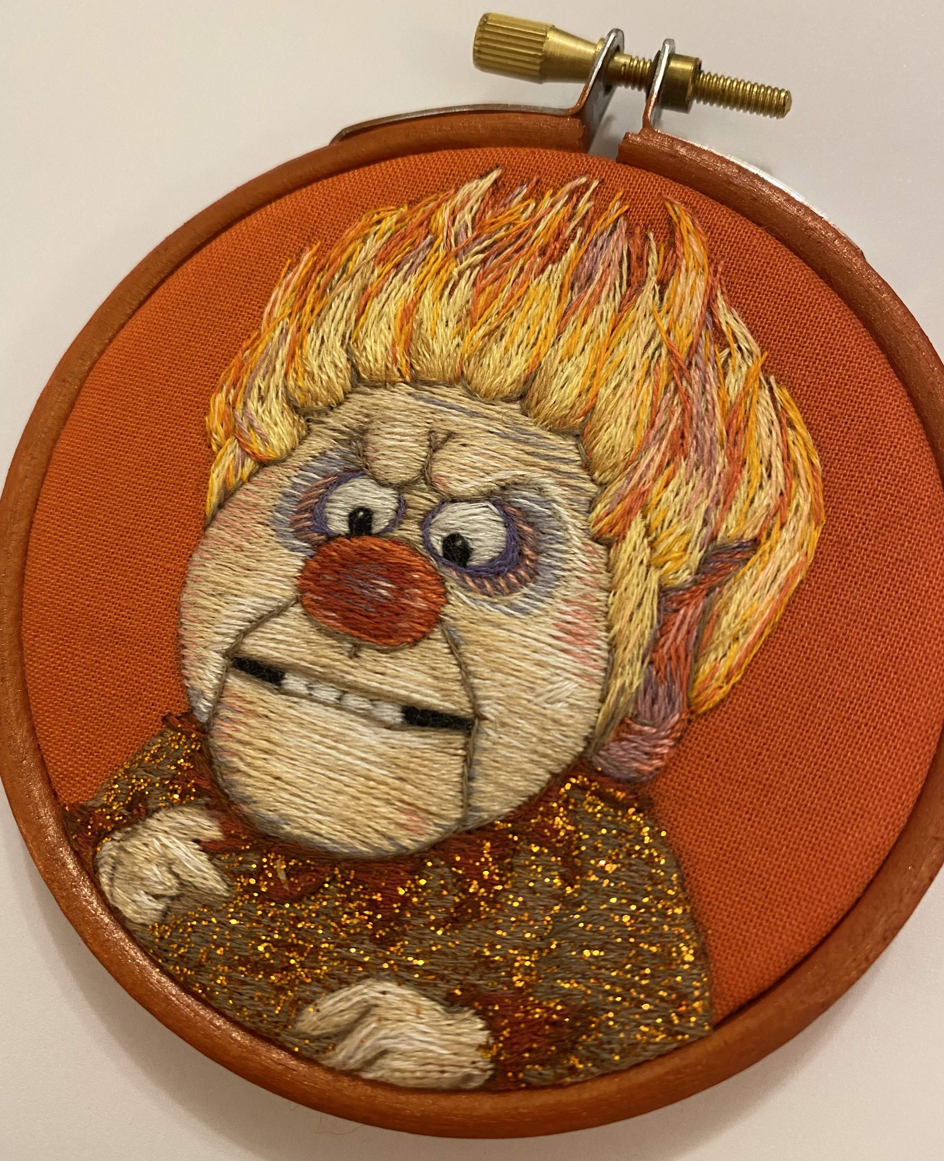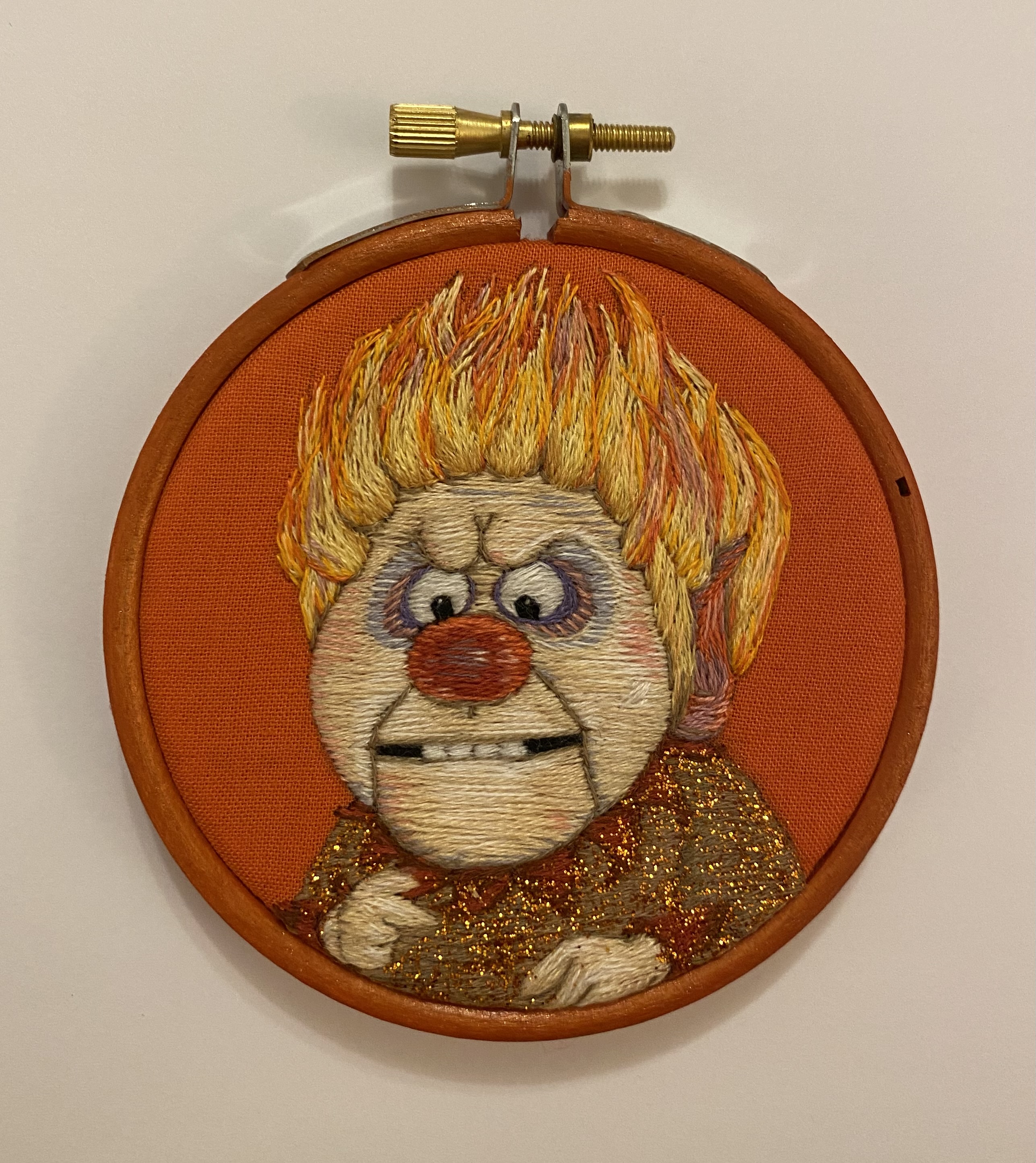 Hand embroidery mounted in a 3" painted wooden hoop and ready to hang.