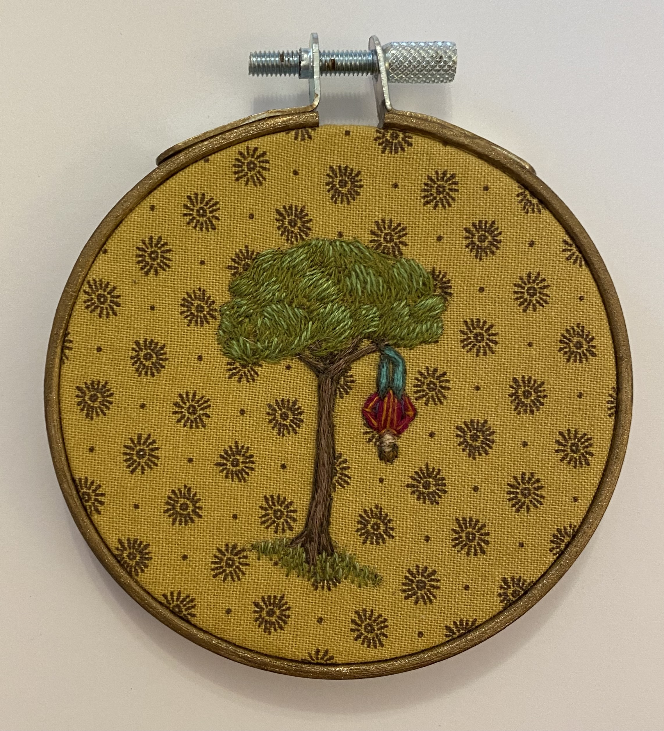 Hand embroidery mounted in a 3" wooden hoop and ready to hang.
