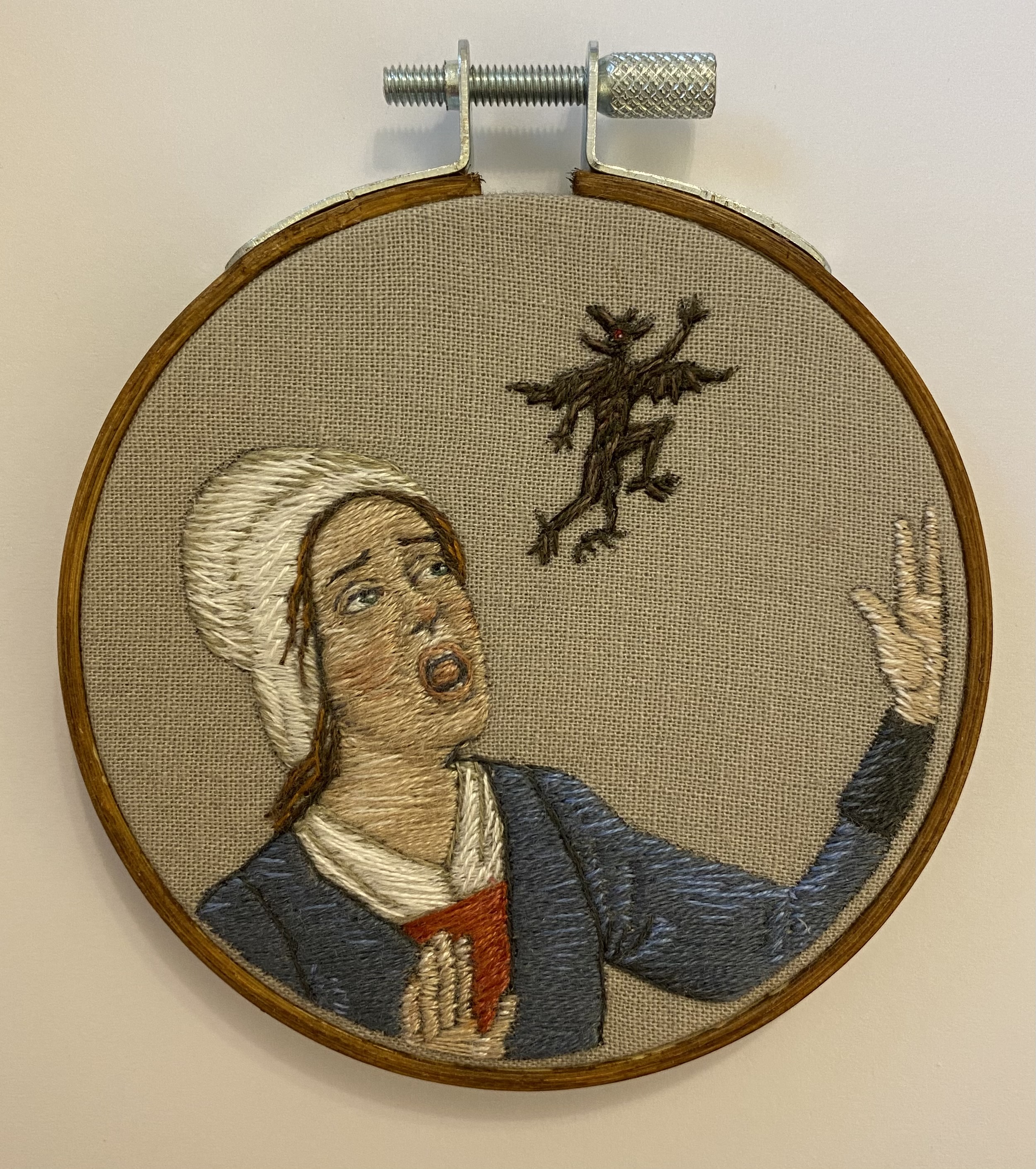 Hand embroidery mounted in a 3" hoop and ready to hang.