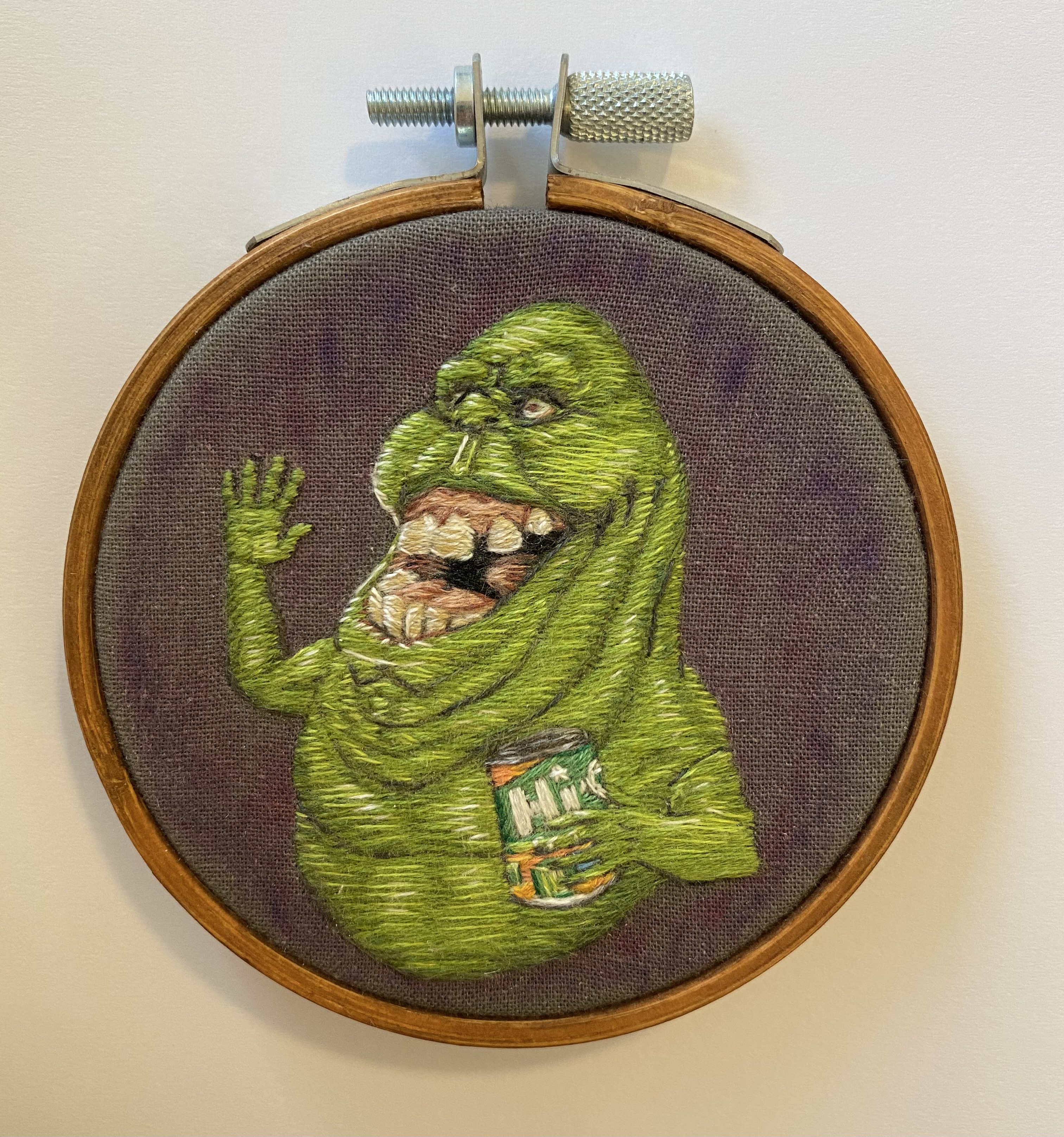 Hand embroidery mounted in a stained 3" hoop and ready to hang.