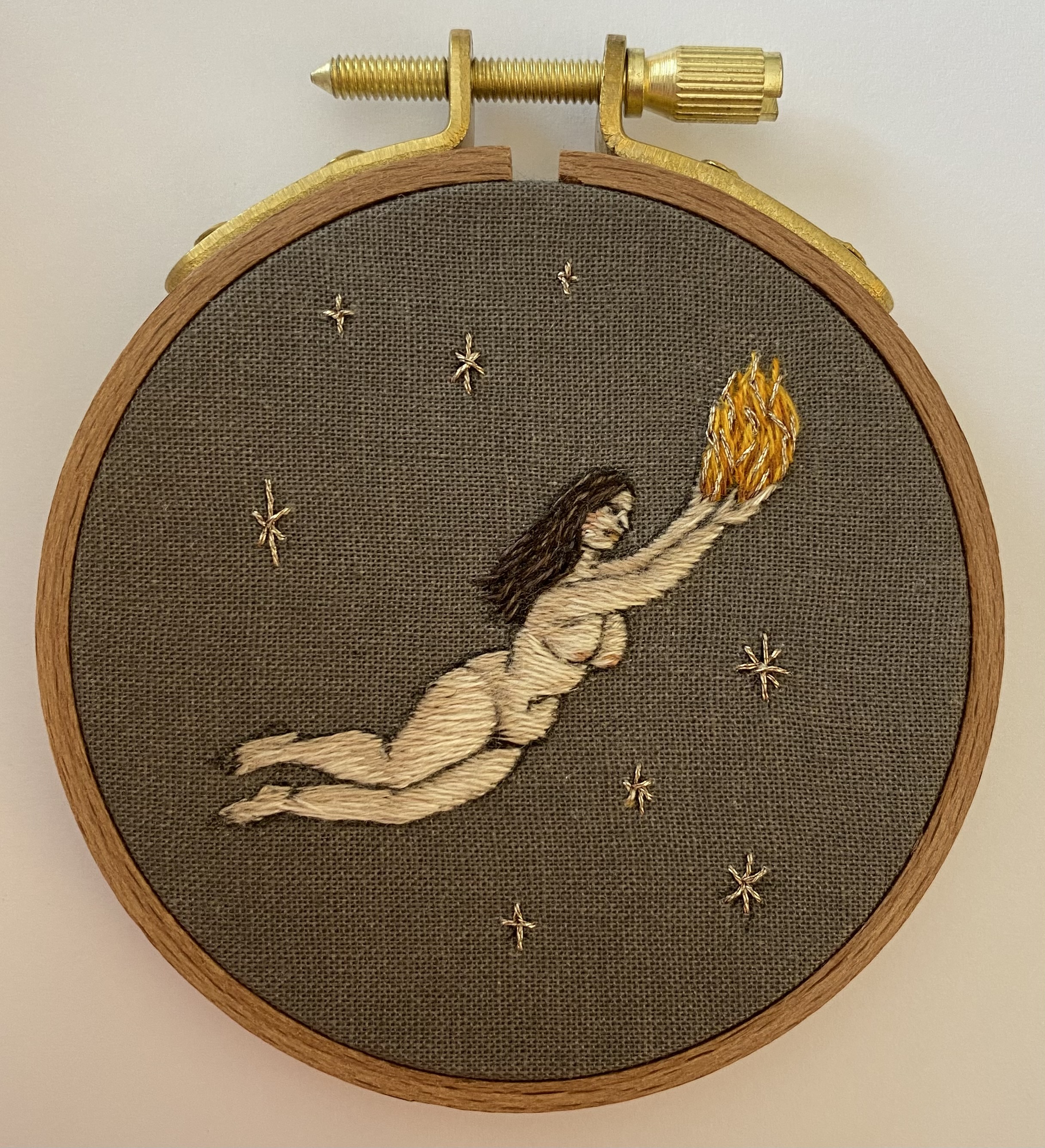 Hand embroidery in a 3" wooden hoop ready to hang.