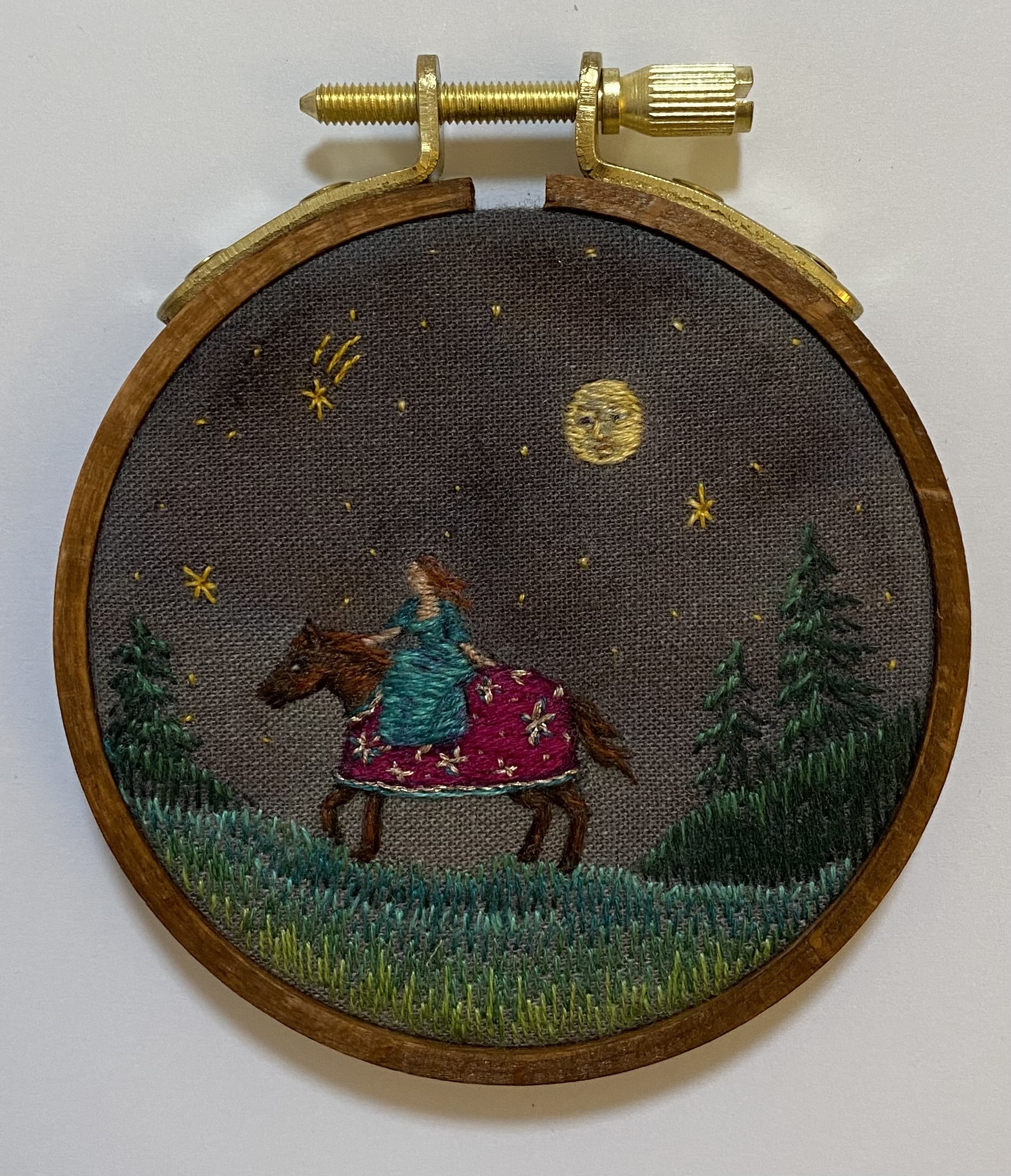 Hand embroidery mounted in a 3" hoop and ready to hang.