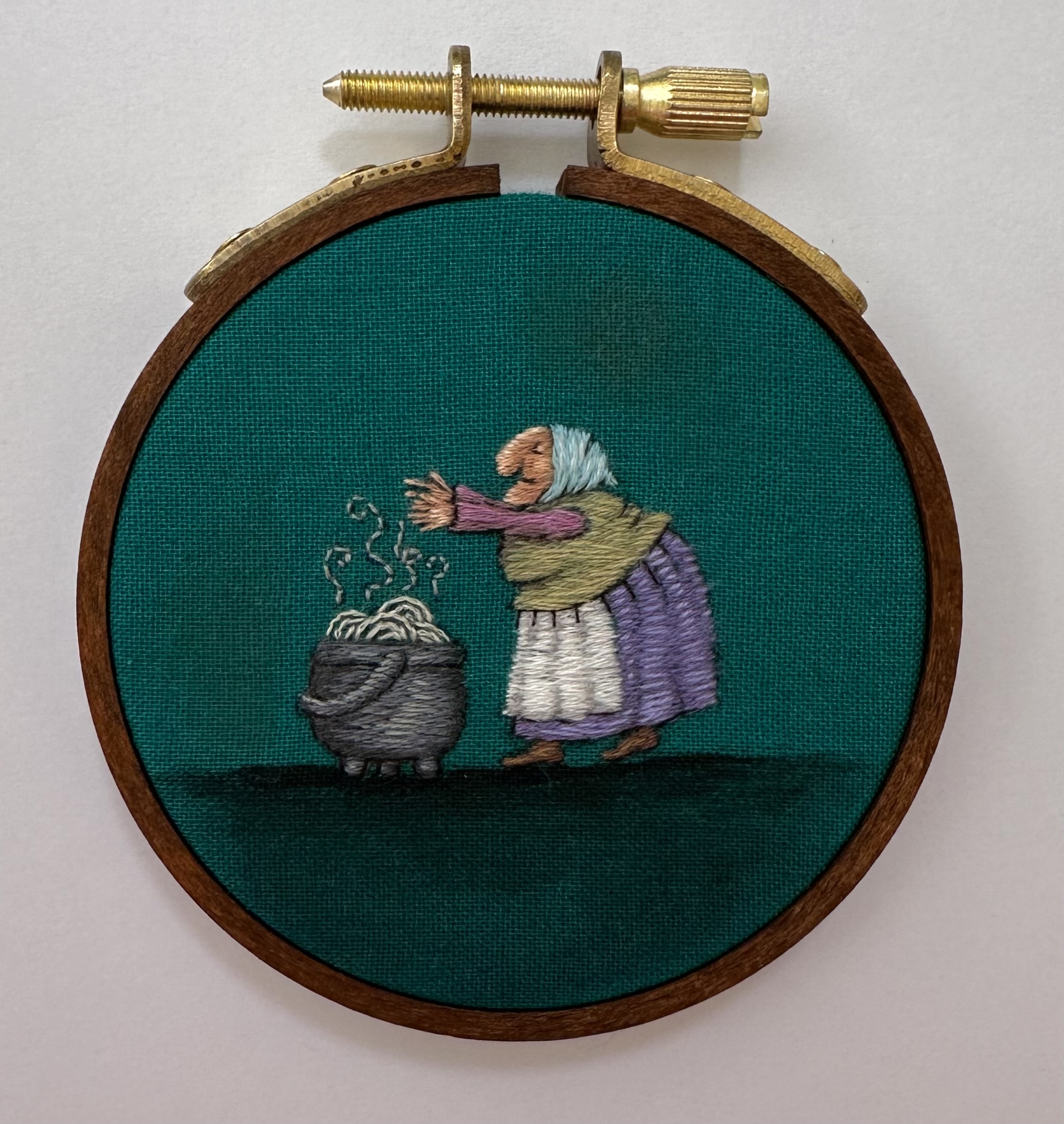 Hand embroidery mounted in a 3" wooden hoop and ready to hang.